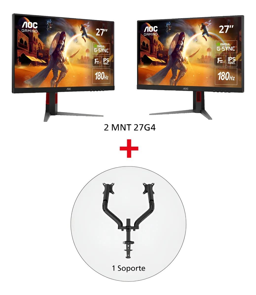 2 Monitores Gamer 27" AOC 27G4 IPS Full HD 180Hz + Soporte Monitor AD110DX